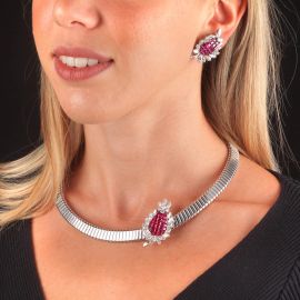 BULGARI PARURE MOTIVO FLOREALE CON RUBINI E DIAMANTI