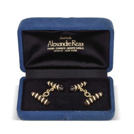 REZA SPIRAL-SHAPED CUFFLINKS IN WOOD AND 18KT YELLOW GOLD