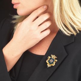 CREST BLOODSTONE BROOCH IN GOLD AND SILVER