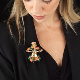 SPILLA/PENDENTE "SAMURAI" CON PIETRE DI COLORE E DIAMANTI