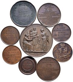Austria Francesco Giuseppe I d’Asburgo Lorena 1873; Francia Luigi XIII Medaglia 1819; Francia Filippo I 1838; Arti nutrici 1823; Filippo V 1837; Anne L. Germ. Necker Stael op. Gaetteaux 1819; Giovanna d’Arco 1823; Impero napoleonico op. Mercandetti; Imperatore Francesco I d’Austria op. Vassallo