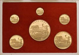 SEI MEDAGLIE IN ORO PER IL PRIMO CENTENARIO DELL’UNITA’ D’ITALIA (1861-1961) OPUS GIAMPAOLI IN ASTUCCIO
