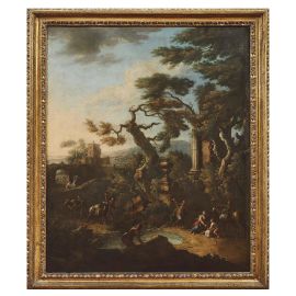 A PAIR OF LANDSCAPES WITH SHEPHERDS AND TRAVELLERS