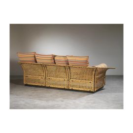 struttura in metallo e paglia di Vienna con cuscini rivestiti in stoffa a righe