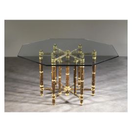 TABLE, BAMBOO AND METAL STRUCTURE, GLASS TOP