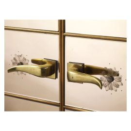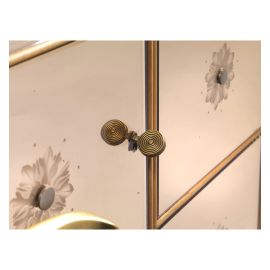 in legno, specchio e ottone, sistema di illuminazione interno, ripiani e cassetti