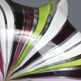 in vetro nei toni del lattimo, viola e verde