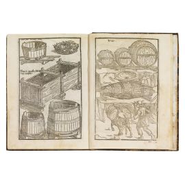 Famous work, published for the first time in Brescia in 1564, illustrated by 19 beautiful full-page woodcut plates, which mostly depict agricultural tools, but also vats and barrels, and beehives. Lacks last leaf (presumably blank), short tear restored with Scotch tape at the verso of the last leaf and other minimal defects, but overall a good genuine copy. Detailed description and additional images upon request.