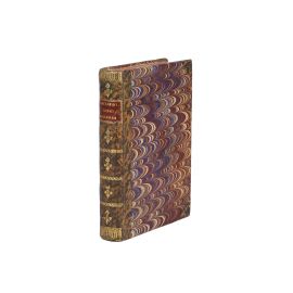 In 4to piccolo (198 x 150 mm). Grande marca xilografica al frontespizio e in fine, un paio di begli emblemi xilografici nel testo (margine superiore un po’ corto, antiche firme di appartenenza al frontespizio [quella al margine inferiore un po’ rifilata], minimo restauro all’angolo superiore interno dei fascicoli D-G e al margine esterno di R3-T2 [S2 e S4 con restauri marginali più evidenti]). Mezza pelle settecentesca, fregi dorati e tassello rosso al dorso, piatti e sguardie marmorizzati, tagli rossi (trascurabili forellini di tarlo).