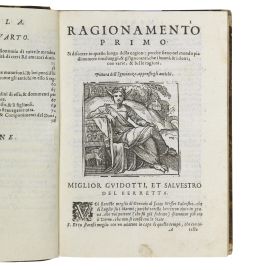 FIRST EDITION of the Book of Eloquence, bound with the famous Marbles and with the Book of Memory. They are all works of bizarre dialogues with lovely woodcut illustrations. A few defects. Detailed description, condition report and additional images upon request.