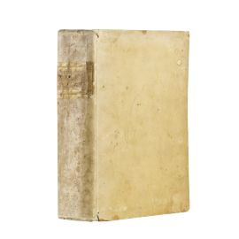 In 4to in 3 parti, con 64 mappe incise (28 nel Discorso e 36 nelle Espositioni). Collazionato completo come segue: *4 A-2Y4; A-F4 (Discorso di Moleto); [croce greca]2 A-Z2 A1-D42; α-η4 (Espositioni di Ruscelli); A-2N2; A-F4. Pergamena settecentesca con tassello dorato e tagli spruzzati (un po’ sciupata). -- Margini corti, occasionali macchie e fioriture, molte tavole sciolte dalle brachette, breve galleria di tarlo al margine interno di 7 tavole (minime perdite), per il resto copia genuina e completa.