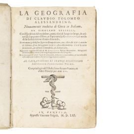FIRST EDITION OF THE TRANSLATION OF PTOLEMAY’S GEOGRAPHY CONDUCTED BY GIACOMO RUSCELLI. A few defects. Detailed description, condition report and additional images upon request.