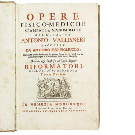 BELL’ESEMPLARE di questa antologia delle opere del Vallisneri, di cui alcune in prima edizione. Profusamente illustrato e completo. Antonio Vallisneri o Vallisnieri (1661-1730) è stato un medico, scienziato, naturalista e biologo italiano. Influenzato da famosi pensatori, come Leibniz, Conti, Alessandro Mazzer e Alberto Dinarello, appartenne alla scuola galileiana. Fu membro della Royal Society e presidente dell’Accademia di scienze, lettere ed arti di Padova nel 1722-1723.