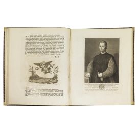 4 volumi in folio (431 x 350 mm). Vol. 1: frontespizio inciso, ritratto di Pietro Leopoldo granduca di Toscana, antiporta incisa, [121] carte di testo e [50] tavole calcografiche. Vol. 2: frontespizio inciso, ritratto di Maria Luisa granduchessa di Toscana, antiporta, [137 (di 138 - assente l’ultima, presumibilmente bianca)] carte di testo e [50] tavole calcografiche. Vol. 3: antiporta, frontespizio, [129] carte di testo e [50] tavole calcografiche. Vol. 4: antiporta, frontespizio, [134] carte di testo e [52] tavole calcografiche. Numerose testatine, iniziali e finalini calcografici. Mezza pergamena leggermente posteriore con doppio tassello in marocchino nero e rosso al dorso, piatti rivestiti in carta marmorizzata. -- Piatto anteriore del terzo volume imbarcato, primo volume con primi e ultimi fascicoli leggermente slegati e con piccolo alone rosaceo al margine interno inferiore (talvolta coperto da pecette cartacee); nel secondo volume il ritratto del Cardinal Bellarmino è rilegato dopo la sua biografia, e l’ultima carta presenta pallide tracce d’umidità al verso; assente il ritratto del dedicatario Leopoldo II nel terzo volume, che presenta un piccolo alone rosaceo al margine interno superiore; gora sottile al margine interno delle ultime dieci carte del quarto volume, che presenta uno stappetto all’ultima carta, qualche abrasione e altre tracce del tempo alle legature, ma nel complesso copia genuina con impressioni fresche.