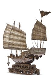 清末民初 十九至二十世纪 清末民初银质“缉捕巡船”摆饰一件