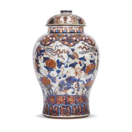 in porcellana a forma orcio decoro Imari e animali mitologici.
