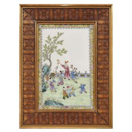 民国 1912至1949 粉彩婴戏图瓷板一组两件