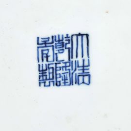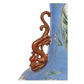 in porcellana turchese con decoro graffiato, dipinta con paesaggi entro riserve, fiori e manici in rosso ferro a forma di drago.