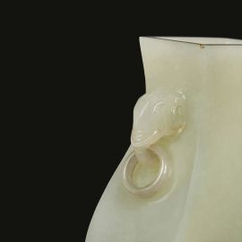 清 十八世纪 青白玉象耳活环方尊 乾隆底款