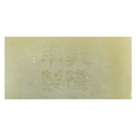 in giada verde pallido di forma squadrata con prese ad elefante, reca marchio Qianlong sotto la base.