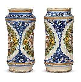 A PAIR OF PHARMACY JARS (ALBARELLI), MONTELUPO, CIRCA 1500-1520