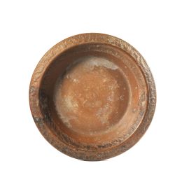 Orlo a tesa svasata verso l'esterno, ampia vasca e piede troncononici. La decorazione figurata, posta sul tratto superiore dell'interno della vasca e sul tratto pendente dell'orlo, è costituita da un motivo a cilindretto (matrice stanca) con serie di animali in movimento.