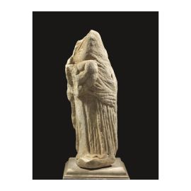 Figura femminile acefala e priva delle braccia, interamente avvolta dal mantello portato al di sopra di un chitone lungo e fitto di pieghe; la statua appare decisamente reclinata in avanti col busto e originariamente anche con la testa. Si ritiene che la posa sia avvicinabile al tipo statuario creato da Filisco di Rodi e noto soprattutto attraverso la statua della Musa Polimnia da Via Terni a Roma, conservata alla Centrale Montemartini e databile nella seconda metà del II secolo d.C. La Musa pensosa è appoggiata a un pilastro roccioso e col braccio destro piegato a reggere il mento, colta in un momento di introspezione e di evasione.