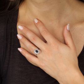 SAPPHIRE AND DIAMOND RING IN 18KT WHITE GOLD
