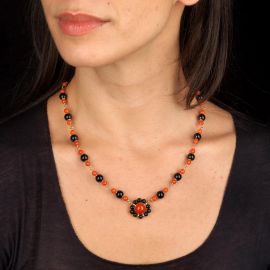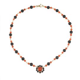 CORAL AND ONYX NECKLACE IN 18KT YELLOW GOLD
