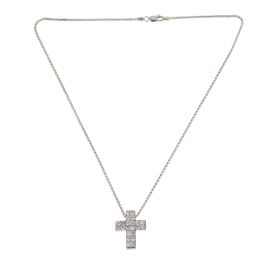 in oro bianco 18kt, composta da catena e pendente a forma di croce, impreziosita da diamanti taglio brillante per ct 1.50 circa, punzoni 750 e del fabbricante, lungh. cm 42, gr. 13