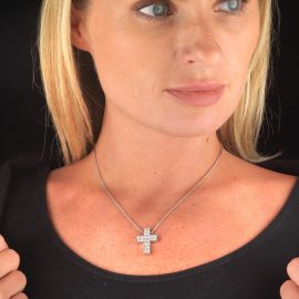NECKLACE WITH A DIAMOND CROSS PENDANT IN 18KT WHITE GOLD