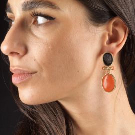 ONYX AND CORAL DROP EARRINGS IN 18KT YELLOW GOLD