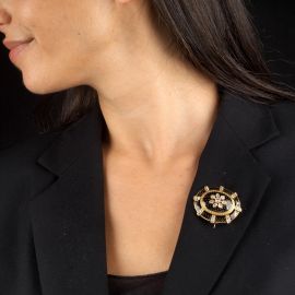 DIAMOND ENAMELED BROOCH IN 18KT YELLOW GOLD