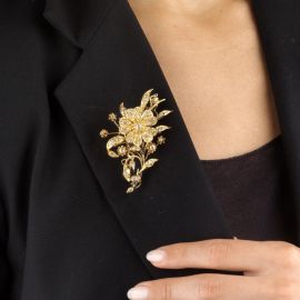 BLOOMING BRANCH EN TREMBLANT DIAMOND BROOCH IN 18KT YELLOW GOLD