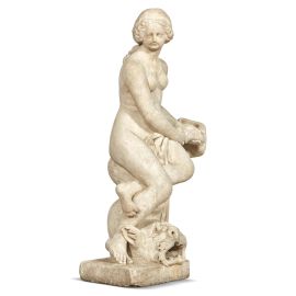 La figura femminile sedente, con una sontuosa acconciatura e intenta a tenere per la coda un essere pisciforme, forse un delfino, deve interpretarsi come una Venere. Pur presentando la superficie parzialmente consunta, a causa di una probabile, lunga esposizione all'esterno, la statua si rivela integra. Deve inoltre immaginarsi esposta in una fontana, probabilmente in una struttura addossata alla parete vista la lavorazione più corsiva del retro.