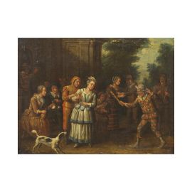 GENRE SCENE WITH HARLEQUIN AND COLOUBINE