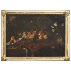 NATURA MORTA CON VASSOIO DI FRUTTA E TAPPETO