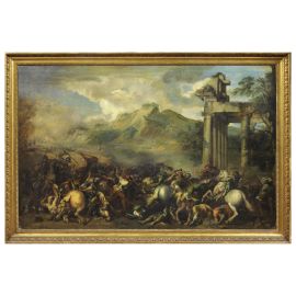 Il dipinto replica la battaglia eseguita da Salvator Rosa (1615-1673) nel 1652, oggi conservata al Museo del Louvre a Parigi.