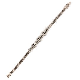 in oro bianco 18kt, impreziosito da diamanti taglio brillante e huit huit per ct 1.50 circa, punzone 18kt, lungh. cm 18, gr. 25