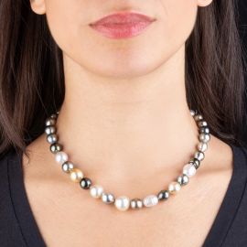 ad un filo di perle south sea digradanti di mm 12-8 circa, chiusura a moschettone in oro bianco 18kt, punzoni 750 e del fabbricante, lungh. cm 43, gr. 56
