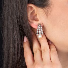 PAIO DI ORECCHINI CON PERLE E DIAMANTI