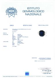 in oro bianco 18kt, con al centro uno zaffiro taglio cuscino di ct 9.50 circa, affiancato da sei diamanti taglio navette per ct 1 circa, colore H, purezza Vs/SI, punzone 750, mis. 56, gr. 6. Corredato di certificato IGN del 22/03/2023 attestante le caratteristiche e l'assenza di trattamenti termici.