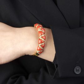 CHANTECLER BRACCIALE RIGIDO CON CORALLO E DIAMANTI