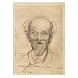al retro disegno a matita nera raffigurante un ritratto maschile e firmato "Egle Marini" (sorella dell'artista)