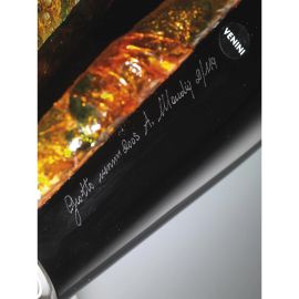 Firma dell’autore, del produttore, titolo, data ed edizione a punta sul lato