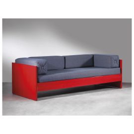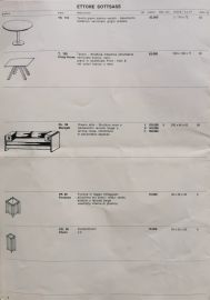 Il divano è presente nel catalogo di produzione Poltronova - Ettore Sottsass con il codice DL99 Maragià nelle alternative laccato beige o anilina rossa; corredato da documenti d’acquisto Design Center datato 1972