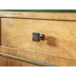 WOODEN DESK, BRASS DETAILS, GLASS TOP