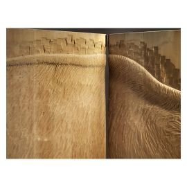 in legno scolpito composto da due elementi da tre ante ciascuno