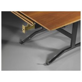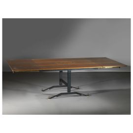 «T4» MODEL EXTENDING TABLE, BLACK LAQUERED METAL AND BRASS STRUCTURE, WOODEN TOP
