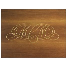 struttura in metallo laccato nero con dettagli in ottone, piano in legno con intarsio “MCM” in ottone